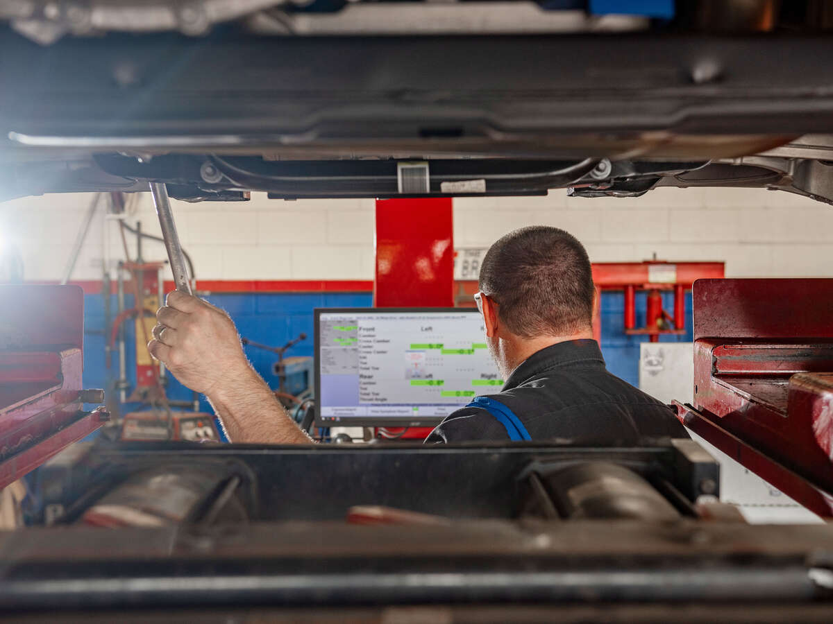 Watch how a fully-comprehensive wheel alignment check can be done in just over a minute.